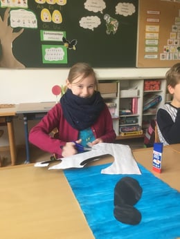 Eine große Überraschung für alle Schüler war die abschließende Begegnung mit dem Bild des Künstlers Henri Matisse. Die Kinder erlebten ihr eigenes Bild als ein echtes Kunstwerk. Erstaunt, wie leicht auch sie zu Künstlern werden können, rückte schnell die besondere Arbeitsweise des berühmten Matisse in den Vordergrund – „das Gestalten mit der Schere“. Diese Gestaltungsweise wollen wir in den nächsten Wochen im Kunstunterricht weiter ausprobieren und den Künstler Matisse und weitere seiner Werke kennenlernen und nachgestalten.