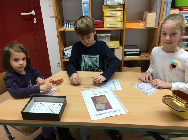 Tatkräftig unterstützt wurden die Vorschulkinder von den Schülern und Schülerinnen der Klasse 2b sowie den Lehrerinnen Frau Rauscher und Frau Sturm. Alle standen mit Rat und Tat zur Seite und halfen und spielten bei den Stationen fleißig mit. Mit Eifer und Freude ordneten die Kinder an verschiedenen Stationen Buchstaben und Anlaute, setzten Buchstabenpuzzles zusammen, schrieben Buchstaben in den Sand und spannten sie auf dem Geobrett mit Gummis nach. Auch das Fühlen kam nicht zu kurz: Mit Geduld ertasteten die Kinder Formen in einem Fühlsack, beschrieben diese und bestimmten deren Anlaute. Das Spielen von Dominos und auch das Kneten von vorgegebenen Buchstaben bereiteten viel Freude. Auch die Pantomime-Station fand großen Anklang – hierbei durften die zukünftigen Erstklässler erraten, welche Tätigkeiten die Tutorenkinder vorspielten. Ob Luftgitarre-Spielen oder Boxen – gemeinsam kam man immer zur richtigen Lösung. Insbesondere die Stempelstation mit besonders großen Buchstabenstempeln fand großen Anklang – wollte sich doch ein jedes Kind auf dem Papier verewigen. Nicht nur die Vorschulkinder freuten sich über den gelungenen Ausflug in die Schule, auch unsere Zweitklässler genossen es, einmal in die Rolle des „Lehrers“ zu schlüpfen und ihre Hilfe und Unterstützung anzubieten. Die Zeit mit den Vorschulkindern verging wie im Fluge und die Kindergartenkinder konnten einen Vorgeschmack auf interessante Schulstunden in der Zukunft erhalten.