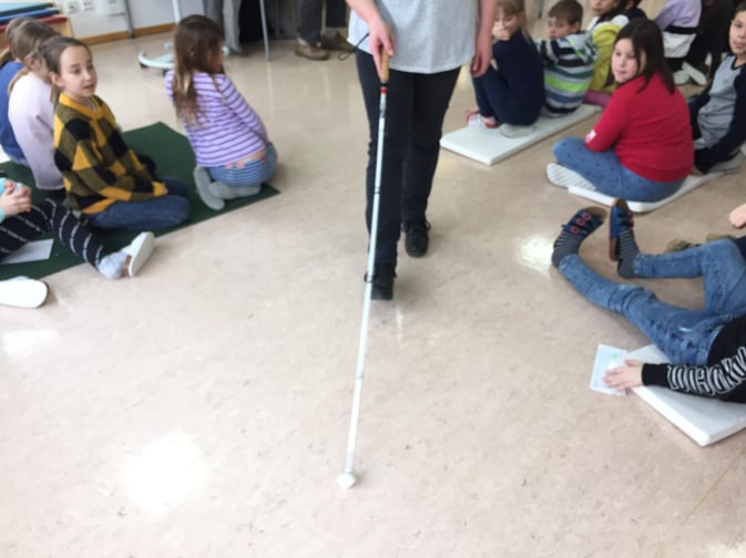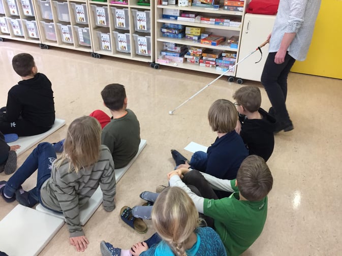 ... fragten sich die Jungen und Mädchen der dritten Klassen, als Frau Knappe und Frau Pichlmeier die Grundschule Nittendorf am 27. und 28. Januar 2020 im Rahmen des Heimat- und Sachunterrichts besuchten. Die beiden Frauen sind selbst stark sehbehindert und engagieren sich bereits seit vielen Jahren für den Bund der Blinden- und Sehbehinderten in Bayern. In einem interessanten Vortrag erfuhren die Schulkinder, dass man durch einen Unfall oder Krankheiten erblinden kann.
