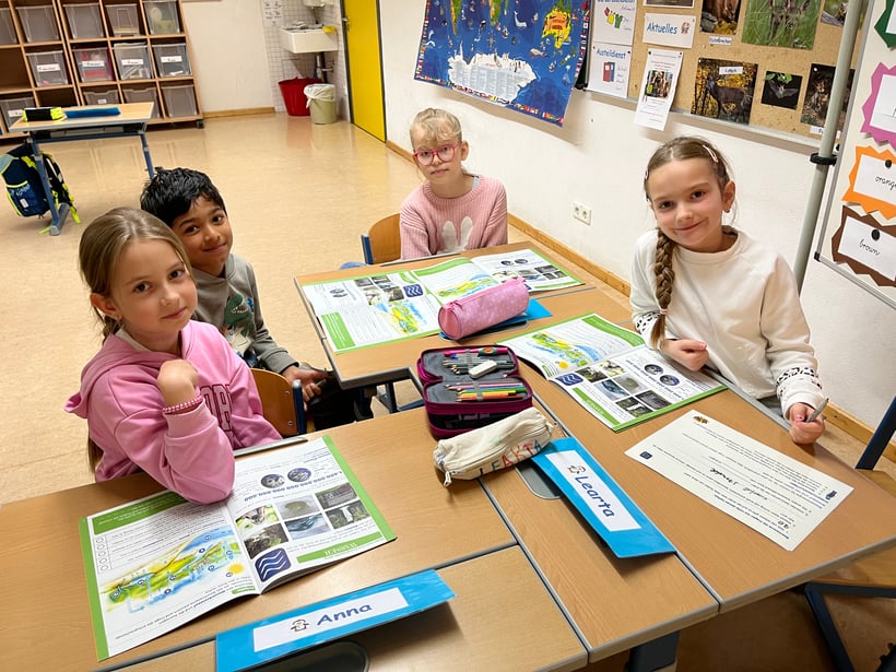 Den Einstieg in dieses spannende Projekt bildete die Geschichte des Märchenlandes „Fossilia“, in dem die Luft verpestet war, riesige Kraftwerke standen und die fossilen Energieträger sich dem Ende zuneigten. Hier mussten die Kinder aktiv werden und sich Gedanken über Alternativen machen. Unterstützt von den Energiebildungsreferenten und Botschaftern „Regeneratiens“, beschäftigten sie sich in Kleingruppen mit den Themen: Biomasse, Wind, Wasserkraft und Sonne als Wärme sowie als Lichtquelle. Hierzu wurden Modelle gebaut und ausprobiert. Anschließend durften sich die Kinder ihre Ergebnisse gegenseitig präsentieren. Außerdem sammelten die Schülerinnen und Schüler viele Strom-Spar-Tipps auch für zu Hause.