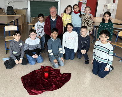 Der Schattentheaterkünstler und Geschichtenerzähler Hermann Schmucker machte den Kindern der 3. und 4. Jahrgangsstufe ein Geschenk und erzählte ihnen die Geschichte von Marias kleinem Esel.