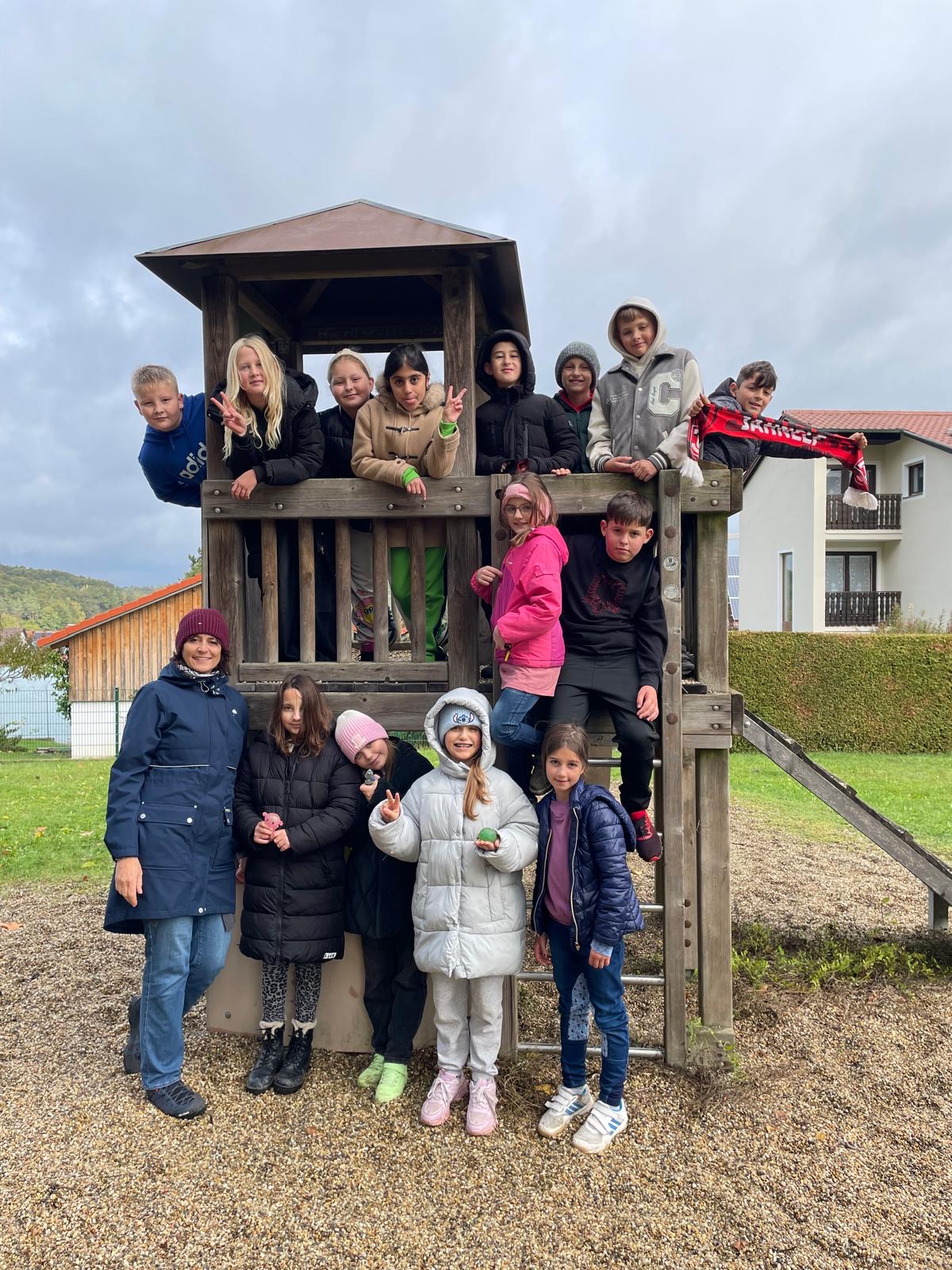 Der ADAC Nordbayern wartete am 14.10.2025 am Parkplatz der Grundschule Nittendorf auf die Schulkinder der 4. Jahrgangsstufe, um ihnen im Rahmen des Verkehrserziehungsunterrichts das Verkehrssicherheitsprogramm des ADAC „Toter Winkel – Todeswinkel“ vorzustellen.
