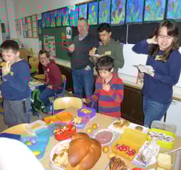 Spiele mit vielen bunten Ostereiern, die machen allen Spaß! Gerne begrüßten deshalb die Schulkinder der Klasse 3a der Grundschule Nittendorf wieder die Schülerinnen und Schülern der Klasse BS 2 der Bischof-Wittmann-Schule in Regensburg (Förderzentrum für geistige Entwicklung) mit ihren Lehrkräften zu einer gemeinsamen Aktion.